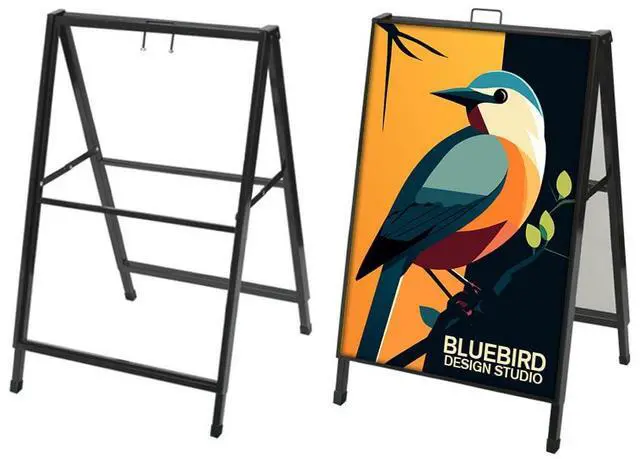 This DisplayCanada sign frame set is designed to provide a professional and durable solution for displaying messages in home improvement and commercial environments. The set includes one robust steel frame with a powder-coated finish, ensuring long-lasting resistance to weather and corrosion. The package contains two white coroplast poster boards, offering a clean and versatile surface for custom signage. The frame features a 6mm maximum insert slot, allowing easy insertion and secure placement of posters. Ideal for both indoor and outdoor use, this sign frame is suitable for various applications, including business promotions and informational displays.
