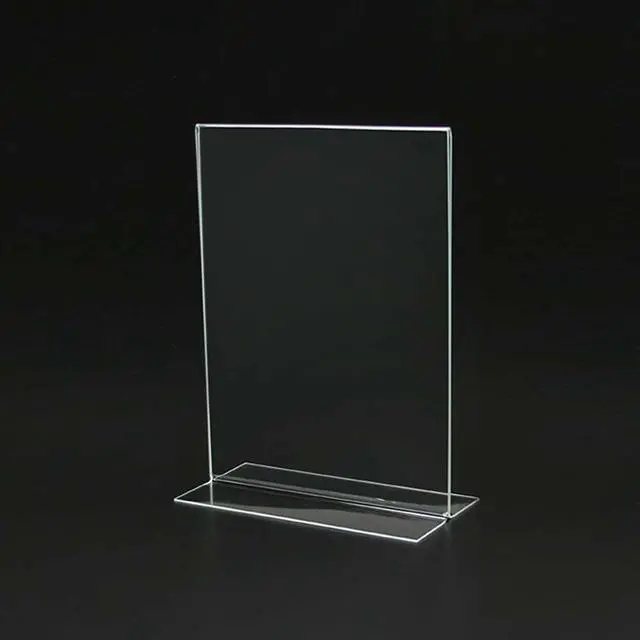 Clear acrylic T-base sign holder designed to display 8 W × 11 inserts. Lightweight, freestanding display ideal for retail counters, offices, restaurants, or event signage.