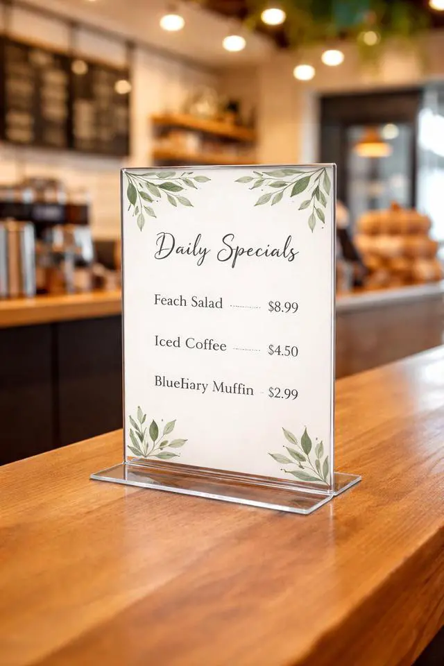 Fits 8 W × 11 signage standard size for menus, notices, and promotional inserts