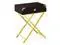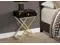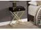 The sophisticated retro glam design of this side/end accent table brings instant style to a room. The rectangular table top is finished in a cappuccino laminate over top quality MDF material, and a simple built-in square gold metal pull to smoothly open and close the spacious storage drawer. The gold metal corner accents give it a nostalgic look with a matching gold metal x-design base to bring it all together. Contemporary yet classic, this multi-functional accent table can easily be used as a nightstand or as an end table next to a sofa or armchair. The compact size also makes it perfect for smaller spaces. Assembly is required. Item 1