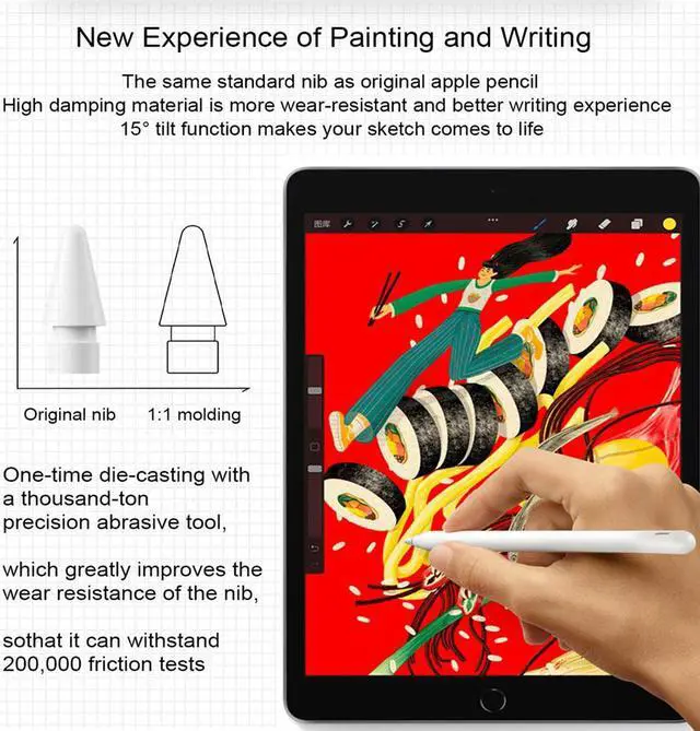 For iPad Pencil with Palm Rejection,Nib Stylus Pen for Apple Pencil 2 1 iPad Pen Pro 11 12.9 Mini 6 7 Air 3 4