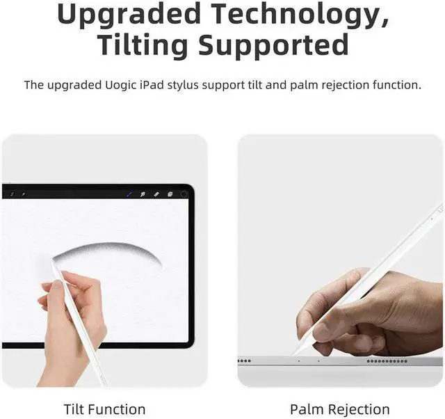 Uogic Pencil for iPad features palm rejection and tilt drawing function, you can rest your hand naturally on the screen when writing and the iPad won't register any marks. Tilt function allows the artists to shade just like a real pencil when the stylus is tilted at an angle. Magnetic design allows you to attach the Uogic Stylus to the iPad.
