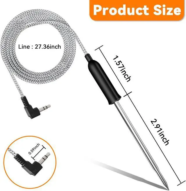 • Stainless steel probe for meat, durable meat temperature probe, can easily monitor meat temperature, easy to use, is your good barbecue assistant.