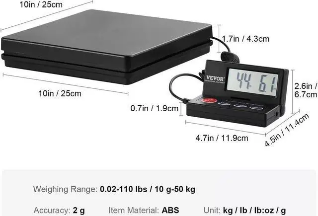 1. Looking for an instant and accurate weighing solution? Choose VEVOR's digital package platform scale with various functions to make weighing quick and easy. With an accuracy of 2 g, it's the perfect choice for you.