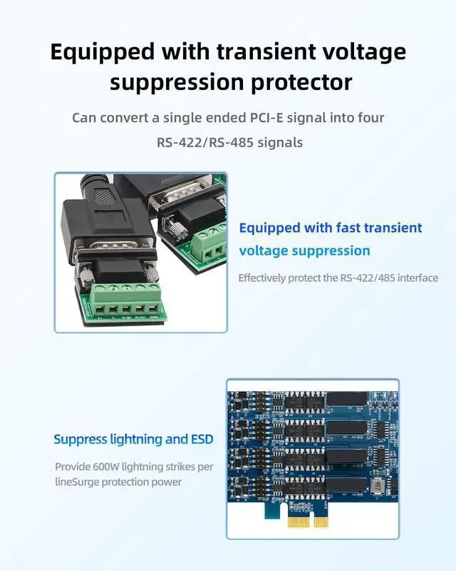 "Robust Data Integrity Assurance", Dual-layer protection: Galvanic isolation shields host devices, while TVS diodes absorb voltage spikes. Perfect for harsh environments like factory floors, SCADA systems, and energy monitoring.