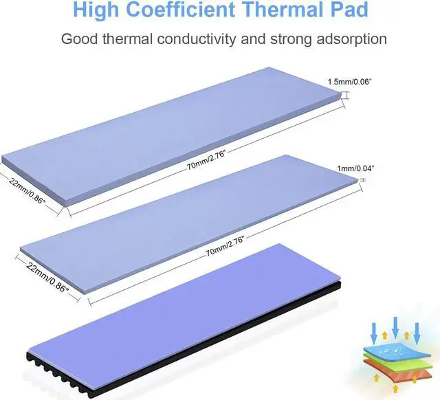 • UPGRADED SSD HEATSINK:The M.2 NVMe heatsinks cooler has upgraded with 2 thermal pads with 1mm and 1.5mm thickness for single-sided and double-sided M.2 SSD.