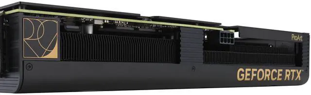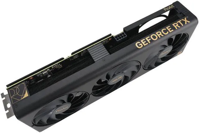Heatpipes efficiently wick heat into a fin stack optimized for airflow from the Axial-tech fans. The entire array is dressed in stealthy black to match the ProArt theme.