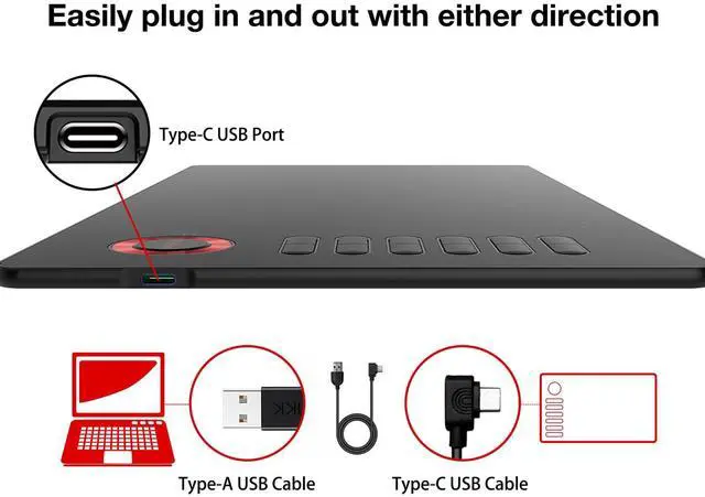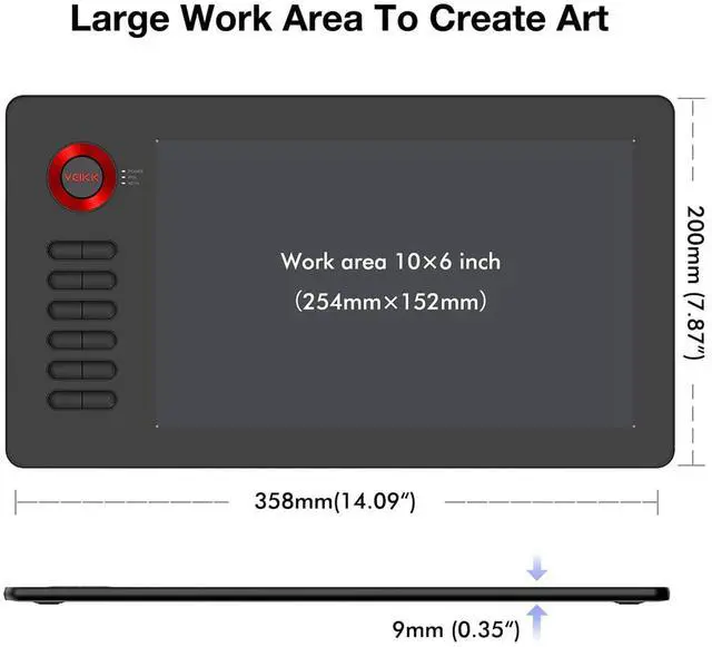 10 x 6 inch large active area which provides more space for art creation.With only 9 mm thickness and 544g lightweight, it’s portable for you to take it anywhere.