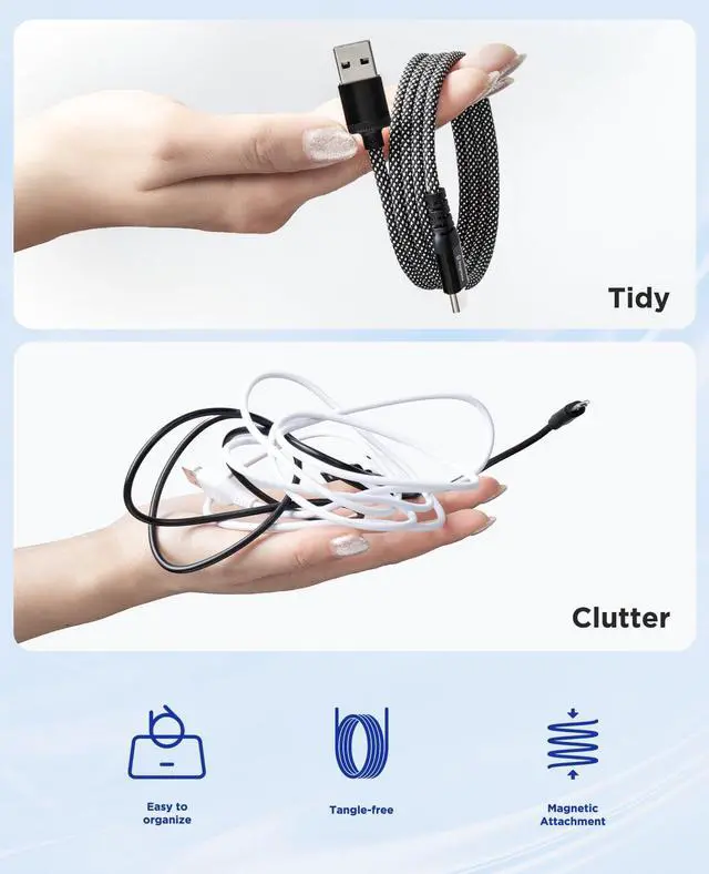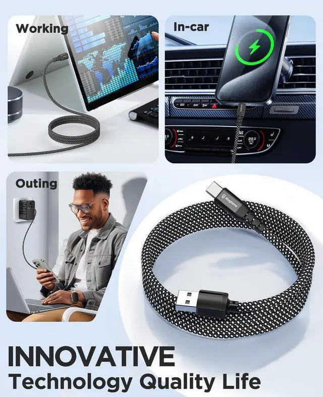 Magtame Magnetic USB C Cable, Elastic Wrapped USBA to USB-C Charging Cable, 1M/3.3FT Retractable USBC Cable, Nylon Braided Type C Fast Charging Cable, Compatible with iPhone 16 15 Samsung