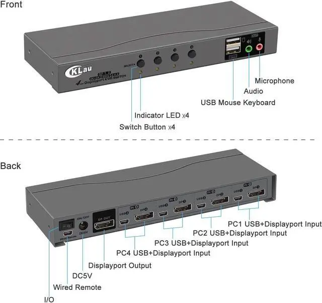 5. 4K KVM Switch Display Port Switcher: wired remote button switch and manual push button switch optional.
