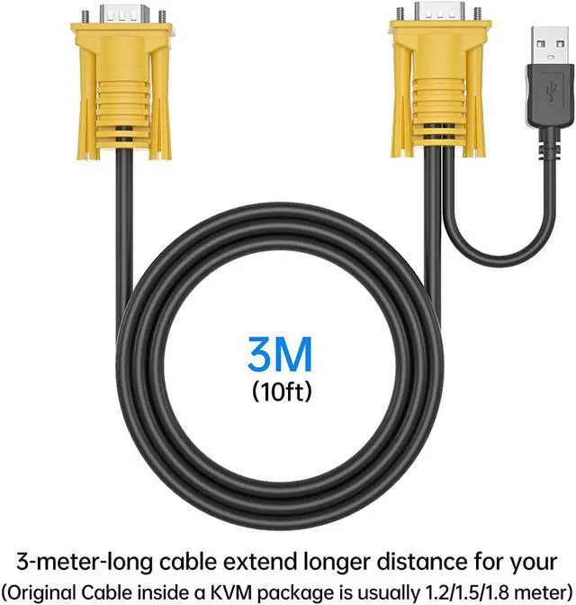 VGA KVM Cable 10ft, Yinker USB VGA 2in1 KVM Cable for VGA KVM Switch (1pack, 3m)