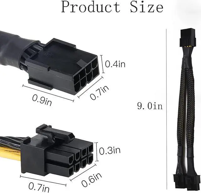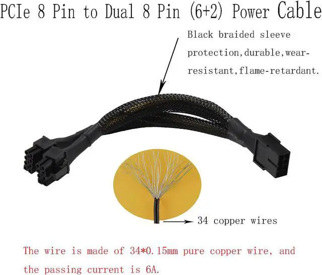 - 2. 8 Pin Pcie Sp Adopts Standard Cable, Each Cable Is Made Of 34 High-Quality Tinned Copper Wires, And The Outside Is Protected By A Braided Sleeve, Which Is Durable, Wear-Resistant And Flame-Retardant. The Length Of The Product (Approx): 9-Inch.