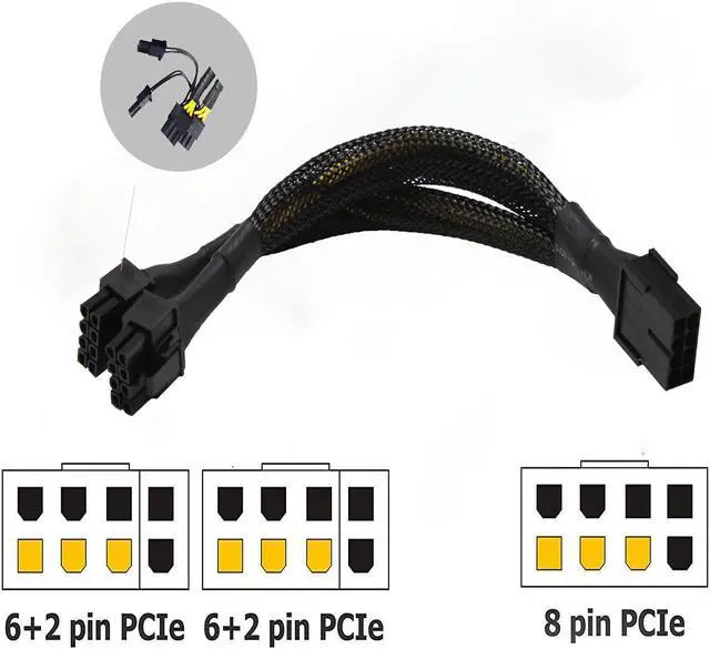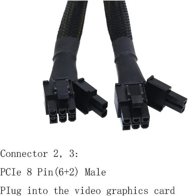 - 1. 8 Pin Female To Dual 8 Pin (6+2) Male Pcie Sp: The 8 Pin Pcie Female End To Plug Into The Pcie 8 Pin Male Cable Of The Non-Modular Or Semi-Modular Power Supply , And The Two 8 Pin (6+2) Male Ends Are Plugged Into The Graphics Card. (Note: It Does Not Work With Fully-Modular Psus)