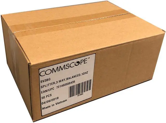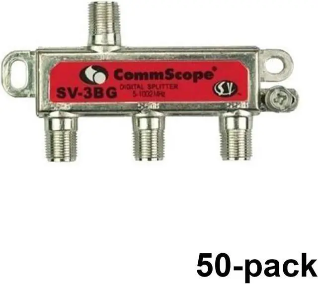 CommScope SV3BG HomeConnect® Three-way Balanced Splitter, 5–1002 MHz - 50 Pack CommScope offers a number of coaxial splitters, which are manufactured to the highest standards to ensure that active components in the network function efficiently and effectively. They pay special attention to soldering, sealing, and the use of non-ferric-based designs to prevent network interference such as passive intermodulation (PIM), which can be caused by corrosion, oxidation and insufficient contact pressure.
