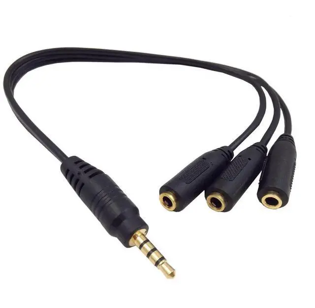 3.5mm Stereo Audio Splitter Cable, 1FT Gold-Plated 3.5mm (1/8") TRRS Stereo Plug Male to 3 Female Stereo Splitter Audio AUX Cable