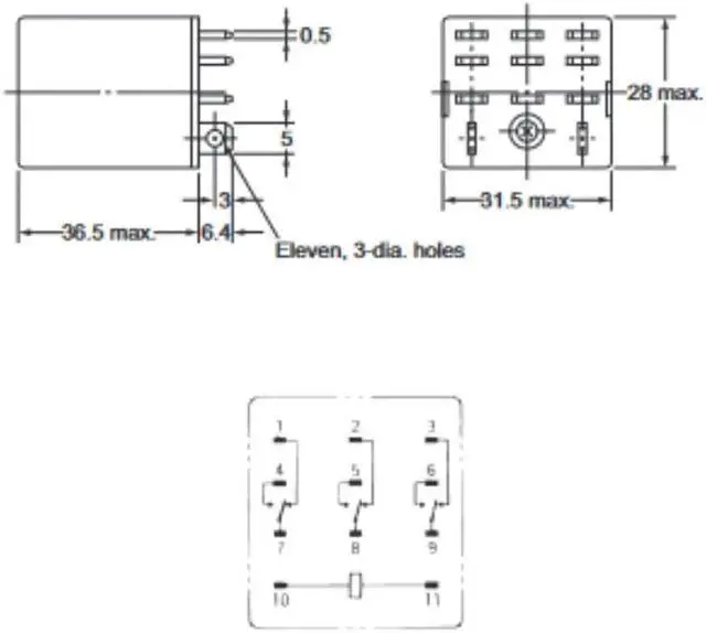 LY3-0-AC120 - RELAY AC 120V 3P2T 10A 11P PCMT 10A/240VAC/28VDC