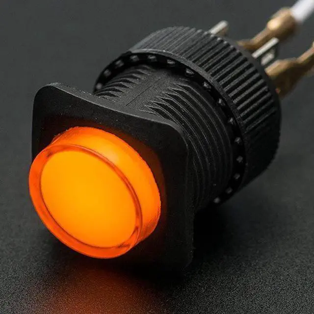 1444 - PUSH SWITCH LIT LATCH YEL 1P1T ON/OFF 3A/125V 16MM TH SOL/PUSH