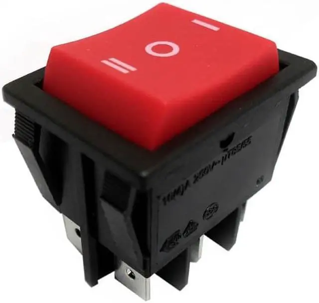 R260-1C6N-BRN-DP - ROCKER SWITCH MOM 2P2T 16A (ON)- OFF-(ON) 125VAC QT 22X30MM RED