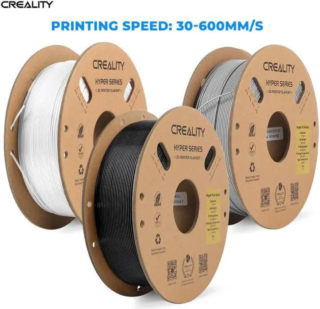 High stability ensures small changes in thermal expansion and cold contraction even when printing at high speeds, bringing high precision in dimensions and better results. With higher tensile strength than ABS and higher toughness than traditional PLA, Hyper Series PLA brings better structural bearing capacity of the printed models. Extruder is stable and based on two-way laser diameter measurement, the filament diameter accuracy is 1.75 +/- 0.03 mm, which makes it flow out more smoothly. Creality Hyper PLA has Paper Thread Reel Eco-Friendly Box and packaging which reduces carbon emissions. The Hyper Series PLA Filament is your reliable choice for high speed printing.