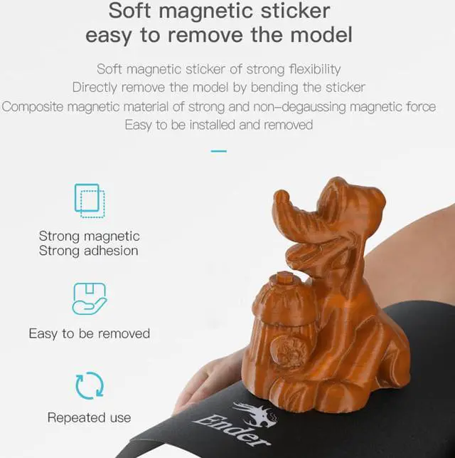 1. This ENDER3 Magnetic Build Surface is rated for PLA filaments ONLY. Any other filaments with high shrinkage coefficients may experience malfunction or decrease in magnetic force over time. This will not prevent your printing from warping.