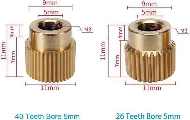 5Pcs/Lot Ender-3 CR-10 3D Printer Extrusion Wheel Brass gear wheel 40/26 Tooth Gear for CREALITY 3D Printer Extruder filament