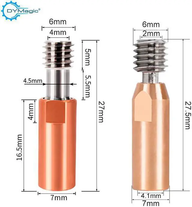 3D Printer 2Pcs Bimetal CR10 Titanium Alloy Heat Break Throat 1.75mm Copper Plating Tube 4.1mm Through For Ender 3 CR-10 Hotend