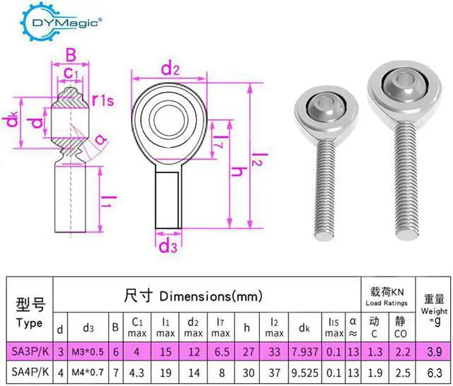 Feature 1:3D Printer M3 M4 Fisheye Bearings