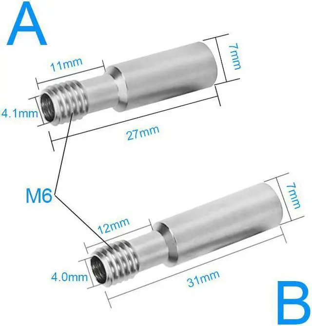 10PCS All-Metal Heatbreak MK8 Extruder Stainless Steel Throat Tube M6 Screw 27mm/31mm for CR-10/Ender Series 3D Printer Hotend