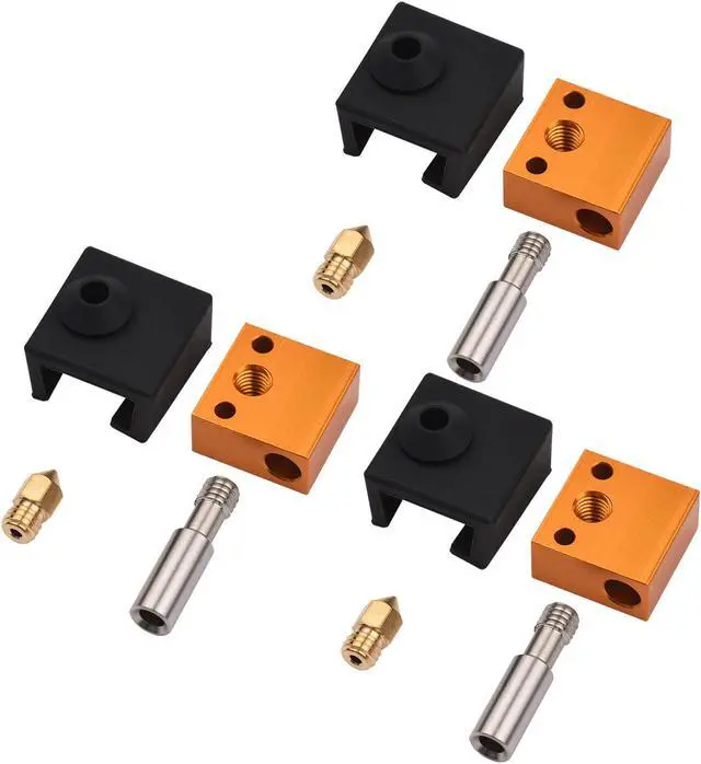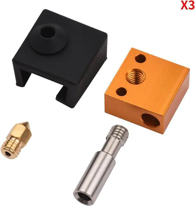 What you Get: 3pcs 0.4mm Nozzles, 3pcs Silicone Cover, 3pcs Aluminum Heater Block, 3 x Stainless Steel Extruder Nozzle Throat.