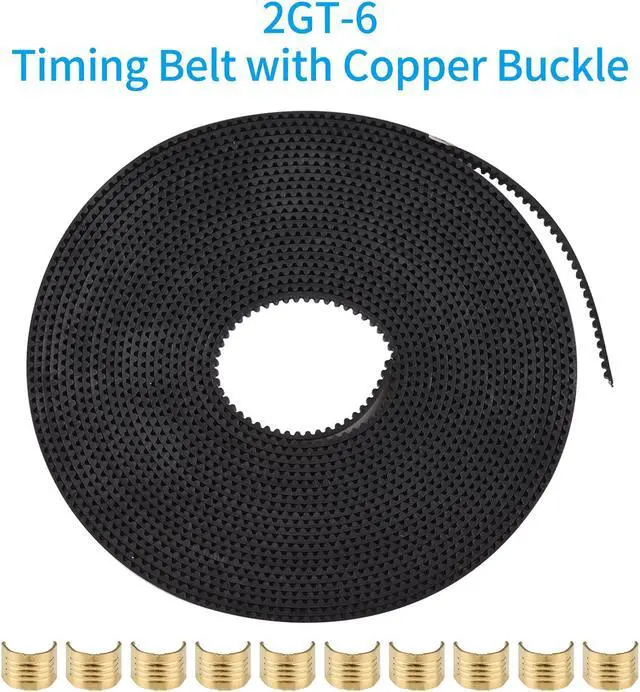 What You Get: 5M(16.4ft) 2GT Timing Belt, width: 6mm. 10 x Brass Copper Buckle.