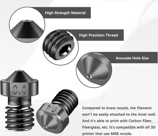 What You Get: 6Pcs 0.4mm Hardened Steel Nozzle.