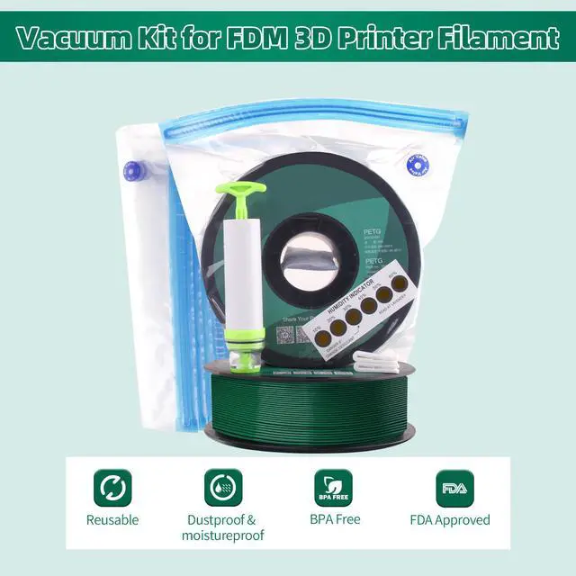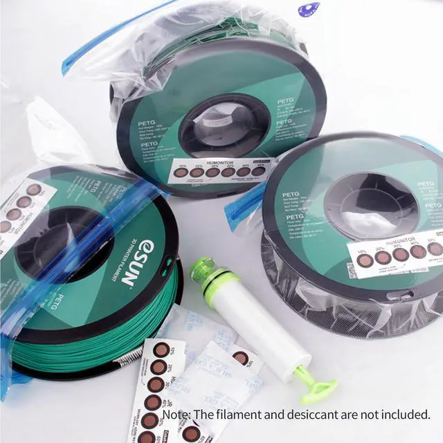When the filaments are opened and not used up, it will absorb moisture and directly affect your printing quality. Vacuum storage kit will help to store your filament in the right way.