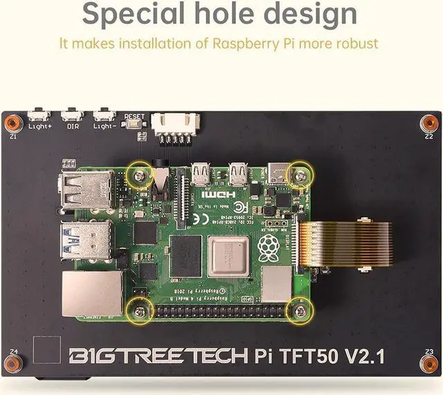 The PI TFT50 display supports hardware backlight adjustment, and the backlight brightness can be adjusted by rotating the potentiometer behind the screen