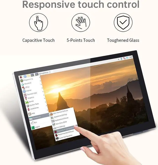 Adapt to the Raspberry-Pi DSI display interface, directly driven by DSI; with a capacitive touch panel. Supports 5-point touch