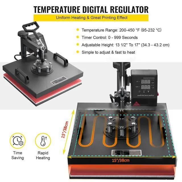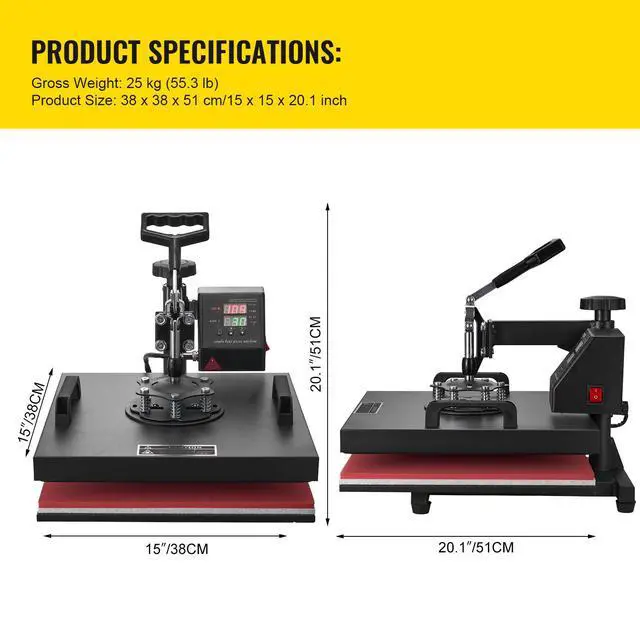 Platen Press (Telfon-coated): 15" x 15" (38 x 38 cm)