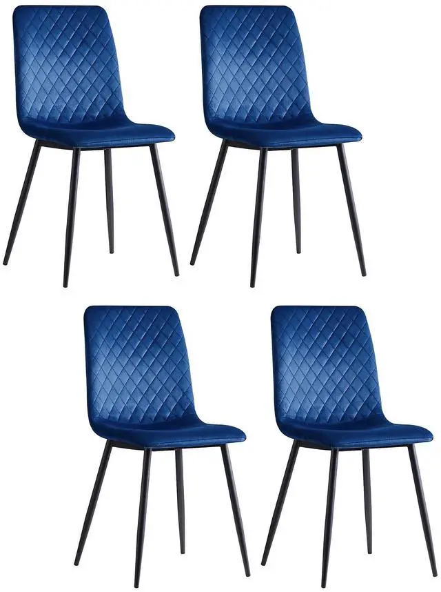 Toytexx Inc Set of 4 Blue Velvet Armless Dining Side Chairs with Metal Legs