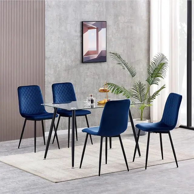 Upgrade your home with this 4-piece set of modern velvet dining chairs - designed for comfort, durability, and style. Upholstered in soft velvet with plush seat cushioning, these armless side chairs feature ergonomic solid backrests and strong iron legs for long-lasting support. Perfect for dining rooms, kitchens, or home offices, their sleek modern design and compact size ( 90.5 x 45 x 42 cm) fit easily into any space. Easy to assemble and built to last, they offer a stylish seating solution for everyday use.