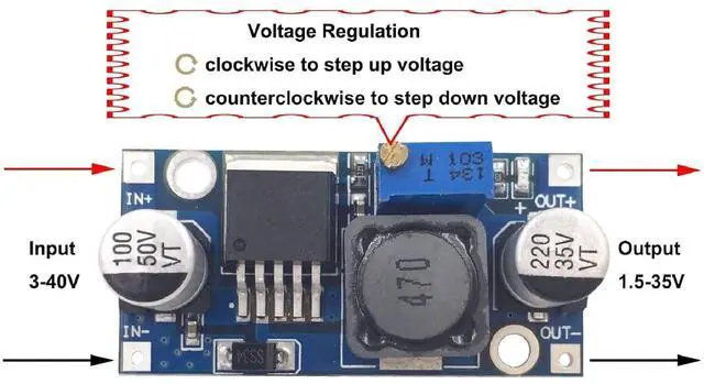 Easy to DIYConnect to power source, using a mini screwdriver to increase or decrease output voltage by adjusting the screw on the blue potentiometer and monitor voltage with multimeter to get the needed voltage, clockwise to increase voltage and counterclockwise to decrease voltage. (Factory default stays a high voltage, you need to contrarotate about 7-15 circles before the voltage starts ramping down, 1 circle means +/- 1V)