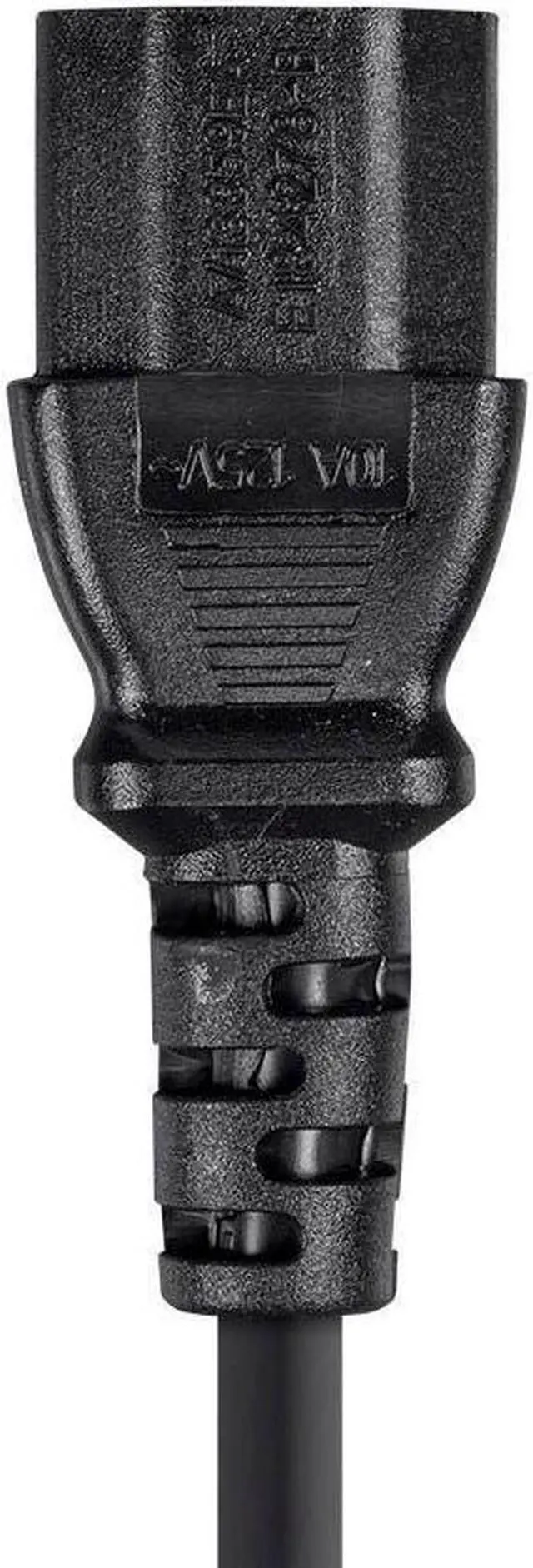 The North America NEMA 5-15 plug to IEC 60320 C13 female connector power cord works with most PCs, monitors, scanners, and printers. Connect your computer, monitor, power adapter, or other device with a male IEC 60320 C14 panel connector to a standard US AC wall outlet. The power cord features a standard, grounded NEMA 5-15P plug on one end and an IEC 60320 C13 connector on the other end. Simply mate the female C13 connector with the male C14 connector on your device or power adapter, then plug the NEMA connector into a nearby AC power outlet, UPS, or other AC power source.