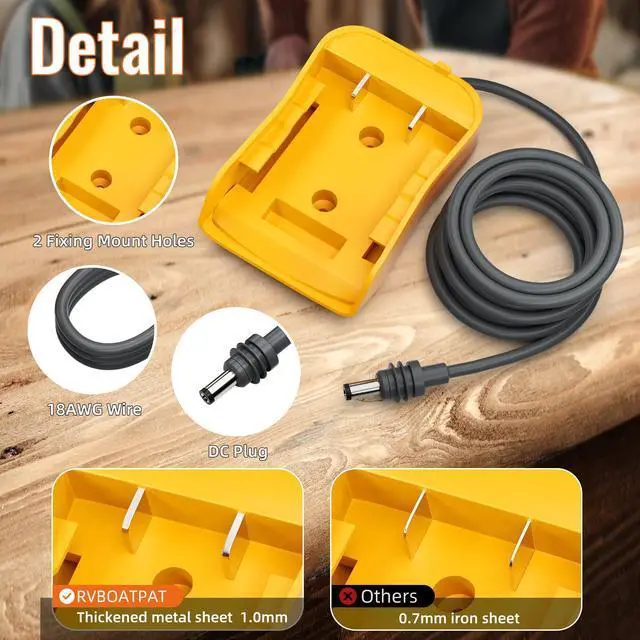 Application: This Starlink Mini DC Power Cord provides stable power for your Starlink Mini Dish Antenna Adapter CompatibilityThe power wheel adapter is perfectly compatible for Dewalt the 20V Lithium Ion series battery Plug and Play: With the starlink DC power cable adapter, you no longer need to connect the terminal, just plug it in and get the power you need immediately Portability: The starlink mini power adapter is designed to be compact and lightweight, so you can take it with you whether you are at home, outdoors or traveling Note: Be more careful with the positive and negative wires during cabling. If the adaptor has not been used for a long time, please remove the adaptor from the battery