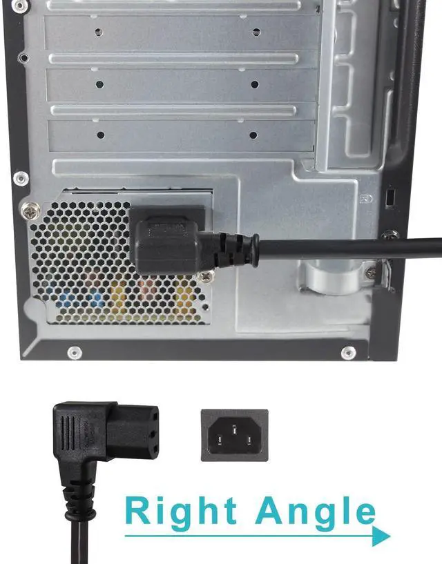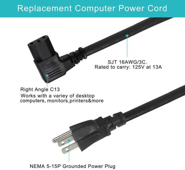 3FT Right Angle Computer Power Cord - NEMA 5-15 Plug to IEC C13 Power Cord,Universal PC Power Supply Cord, 16AWG, Black C13 3 Prong Angled AC Power Cord for PC Monitor/TV