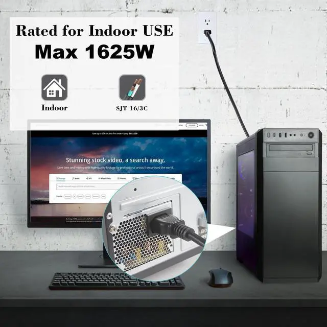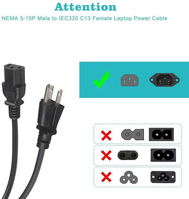 • Universal Compatibility: This 1FT computer monitor power cord features a NEMA 5-15P to C13 connector, making it compatible with most computers, monitors, TVs, projectors, desktops, and speakers.