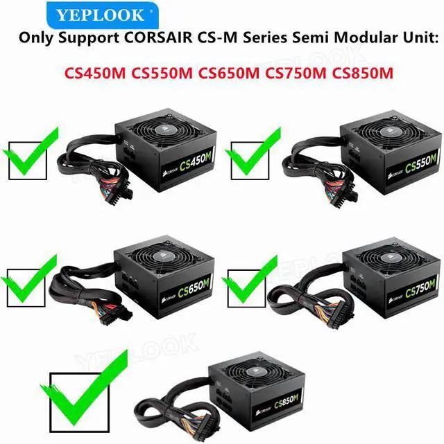 Compatibility: Only support Corsair CSM Series Semi Modular Unit CS450M CS550M CS650M CS750M CS850M Note: Because the voltage and line sequence of each power module port is different. If your power supply model is not mentioned above, please check compatibility with our customer service before you buy! Contact us if you need other types of Modular power cables. (8Pin, Dual 8Pin, SATA, IDE, CPU, 24Pin Main Power)