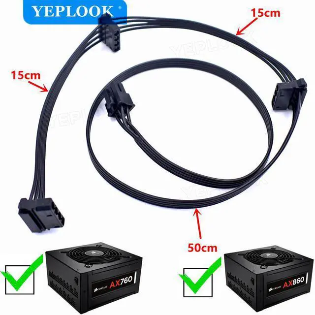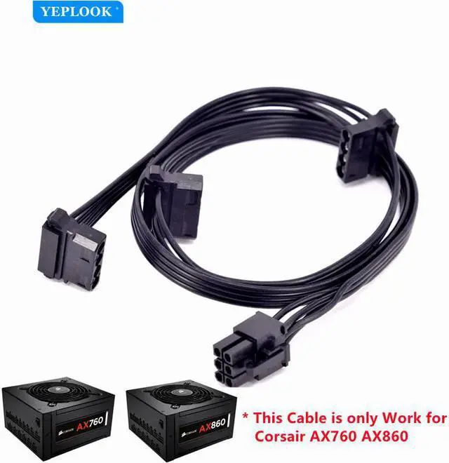 PCIe 6Pin to 3 IDE Molex 4Pin GPU Power Supply Cable For Corsair AX760 AX860 AX Series Full Modular PSU 18AWG 50+15+15CM