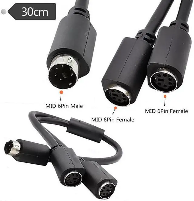 Câble adaptateur de données PS/2 PS2, Mini DIN, séparateur 6 broches, 0.3m