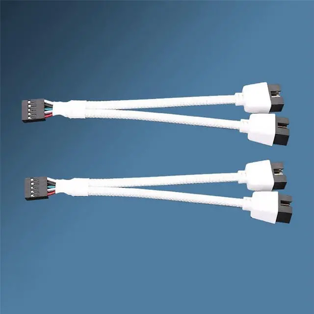 2 Pack Computer Motherboard USB 2.0 9-pin to Dual 9-pin Extension Cable Y Splitter Audio HD Extension Cable White