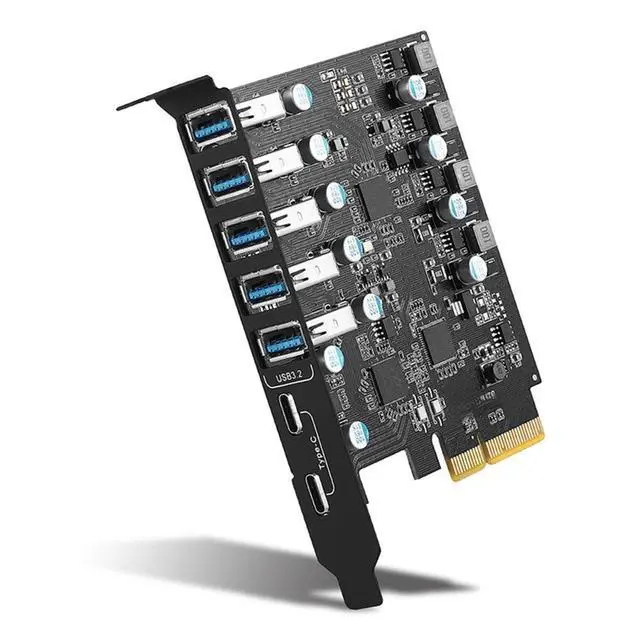 PCI-E to USB 3.2 Type 2 Card Adapter with 20 Bandwidth 7 Ports (5XUSB-A+2X) Expansion Card