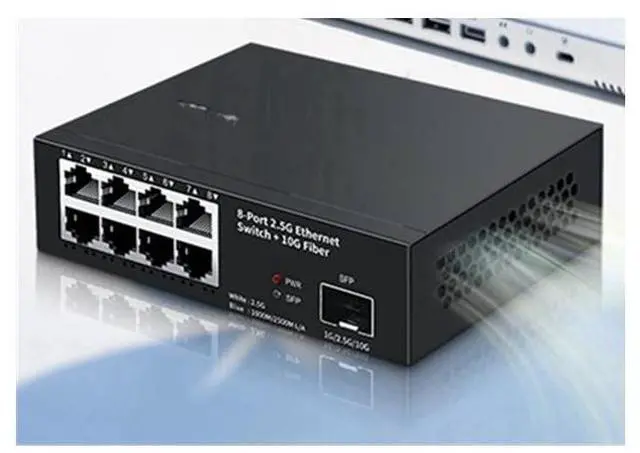 8 Ports Ethernet Switch 2.5G bps Network Switch + 1 Port 10G Fiber Slot Home Lab Network Switch Plug and Play - EU Plug