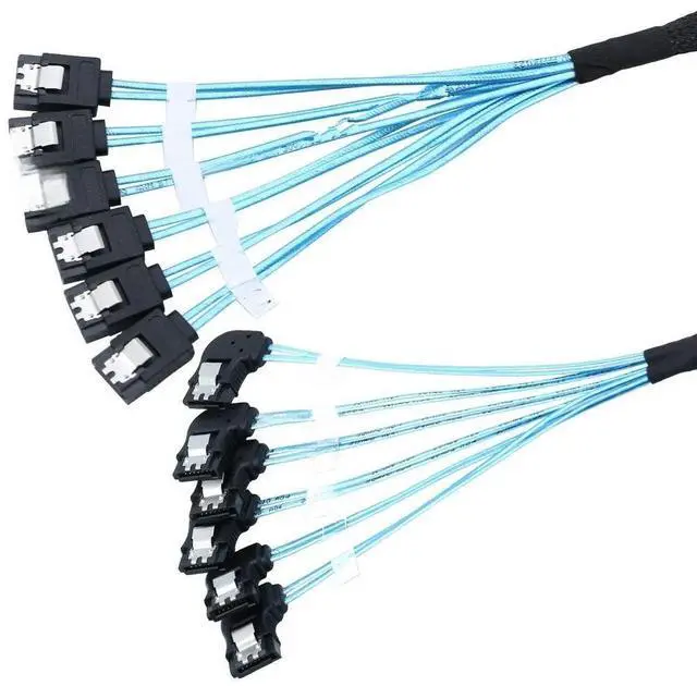 SAS 4.0 6SATA to 6SATA 7PIN Female Left Angle Cable SSD and Hard Drive Connections