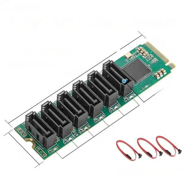 M. 2 (PCIe 3.0 ) to 6 Ports SATA III 6G SSD Adapter with 3 SATAIII Cable PCIe Gen3x2 Non-RAID 1166 Chip
